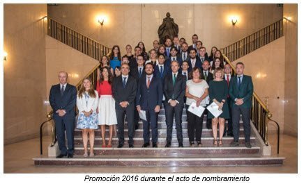 Terminadas las prácticas puede que haya o no un período de vacaciones, que acaban con un acto oficial de nombramiento en el MFOM en el que se jura/promete la Constitución, al que asiste el Ministro de Fomento, como así fue por lo menos en la convocatoria 2016-2017.