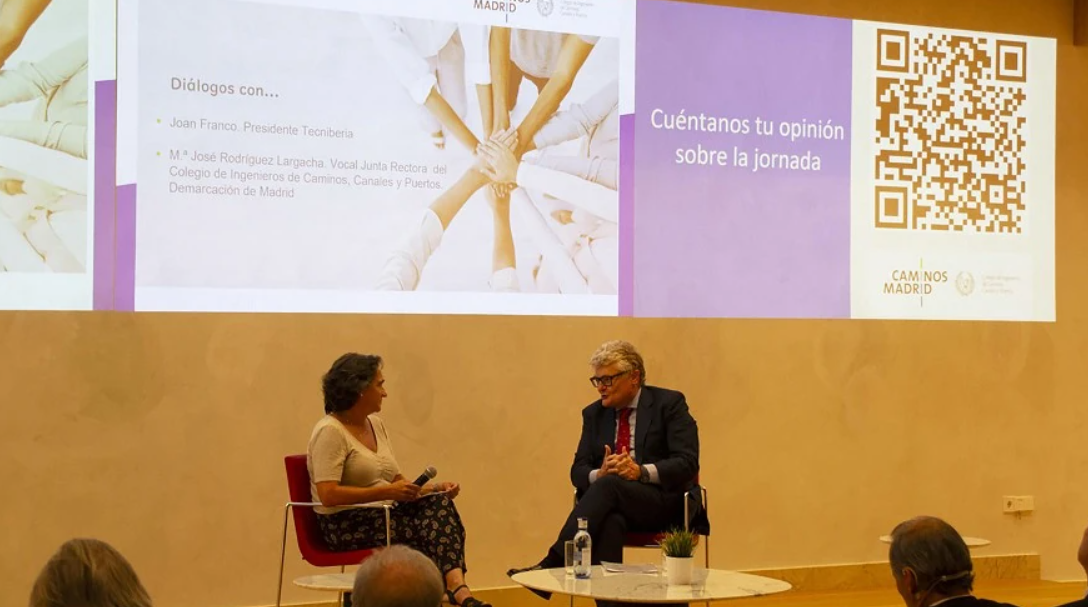 Joan Franco, presidente de Tecniberia, la Asociación Española de Empresas de Ingeniería, Consultoría y Servicios Tecnológicos, durante su intervención en la jornada ‘Presente y futuro de la Ingeniería de Caminos’